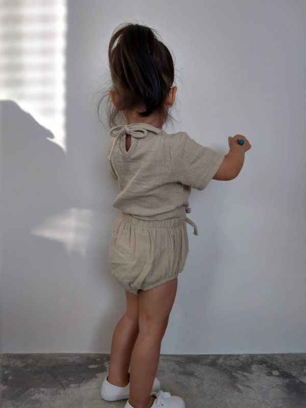短袖棉麻套裝-開心果,CutiePie
