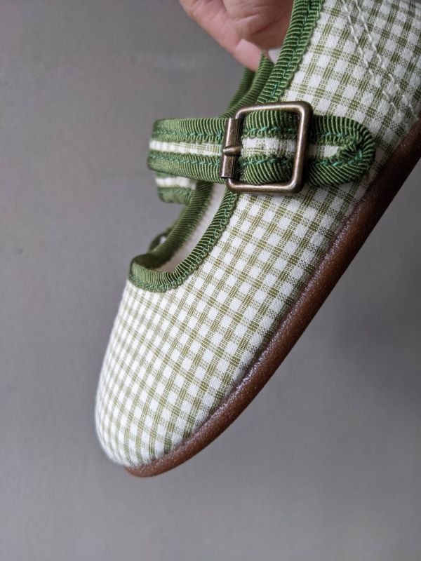 老奶奶鞋-綠色格紋